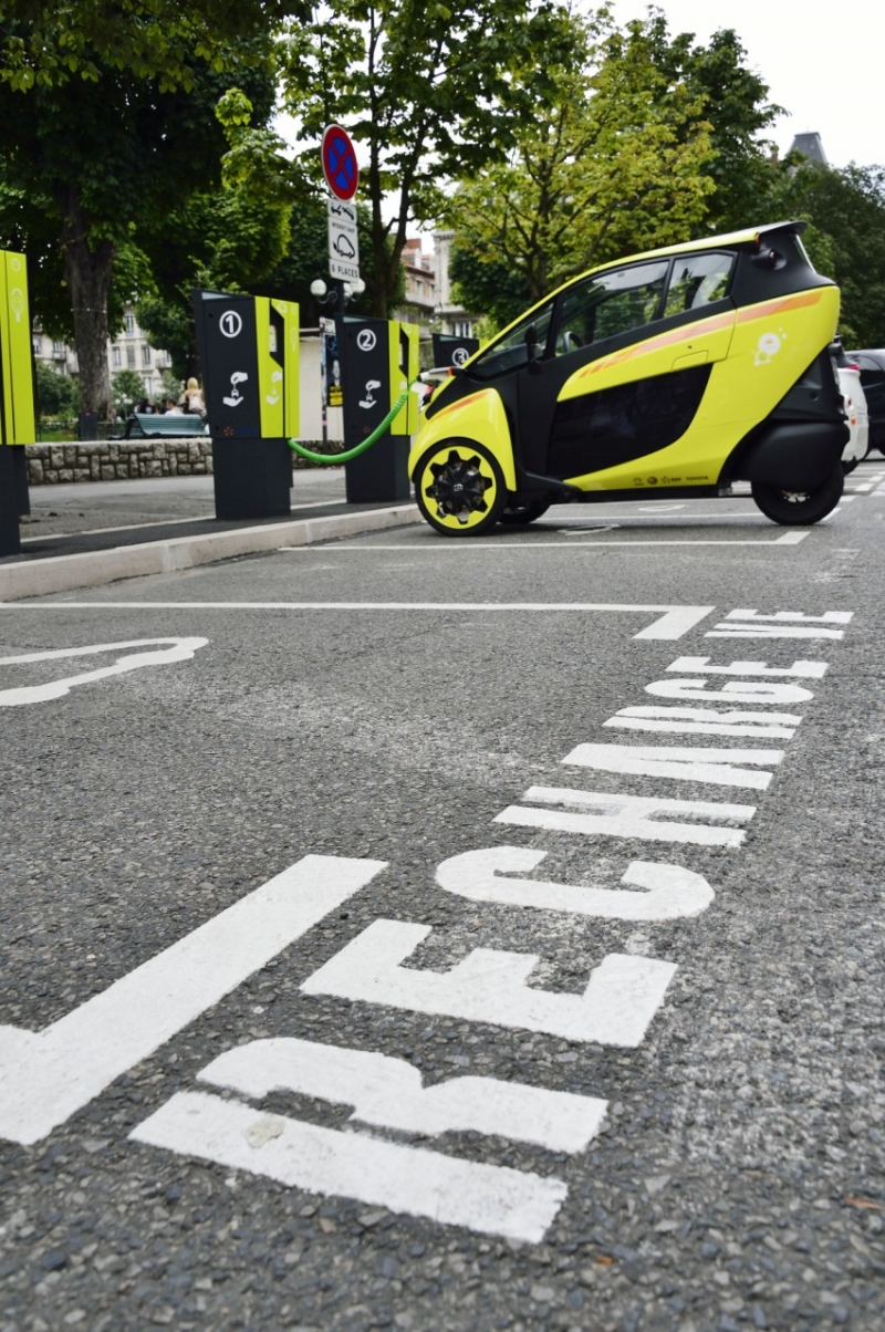 Mieszkańcy Grenoble od półtora roku mogą korzystać z wynajmowanych na minuty elektrycznych mikrosamochodów Toyota COMS oraz i-ROAD. Pierwszy z nich to czterokołowy, jednoosobowy pojazd o niecodziennym wyglądzie. Największe emocje budzi jednak i-ROAD, przede wszystkim ze względu na trójkołowe podwozie, dzięki któremu pojazd przechyla się na zakrętach jak motocykl. Mikrosamochody można odebrać i oddać w jednej z 27 stacji.